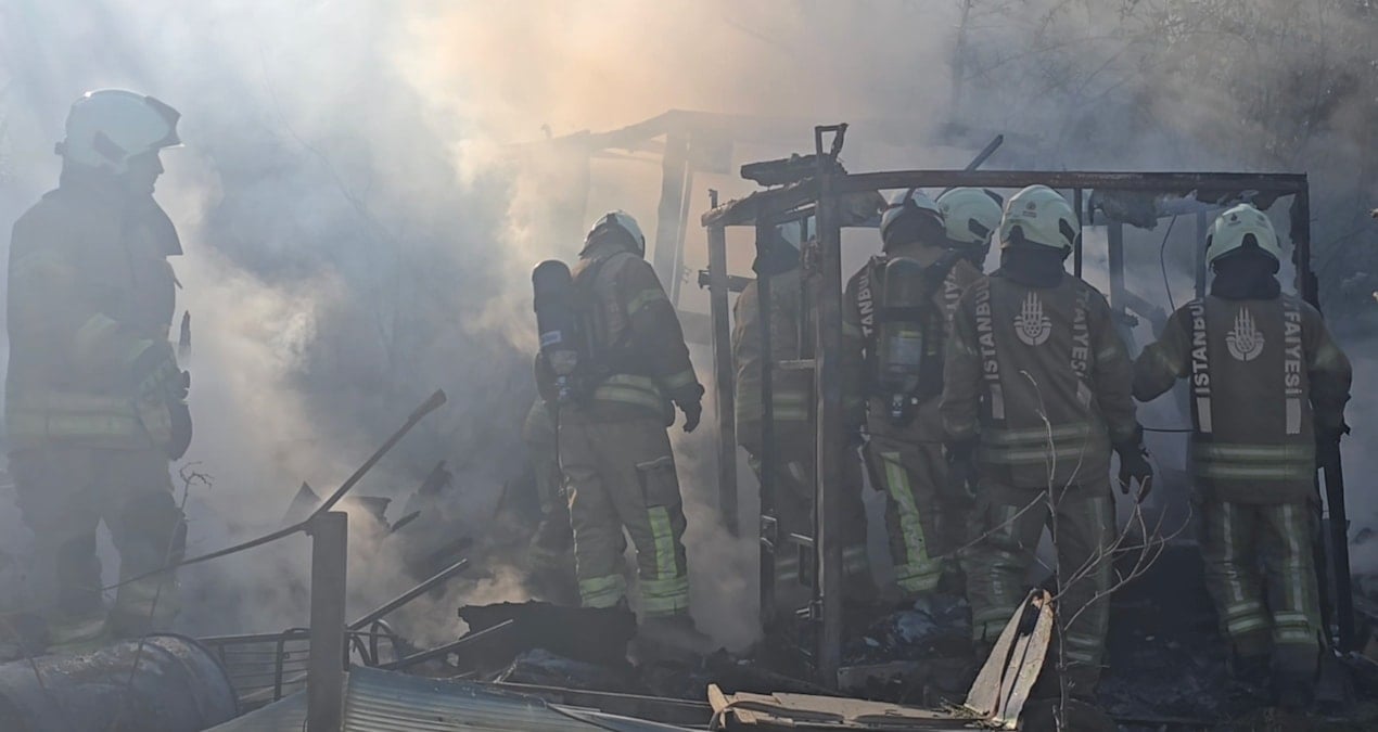Yangın nedeniyle gecekondu tamamen kullanılamaz hale gelirken, bölgede yükselen yoğun duman gökyüzünü kapladı.